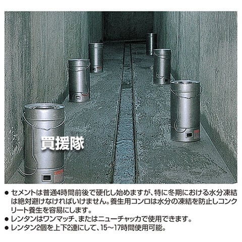 養生用コンロは水分の凍結を防止しコンクリート養生を容易にします。