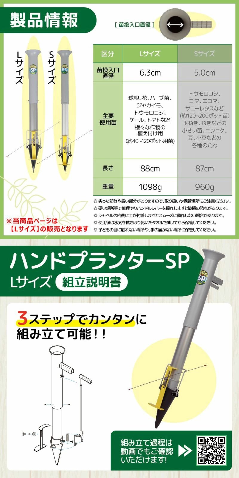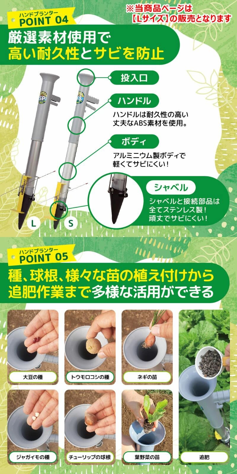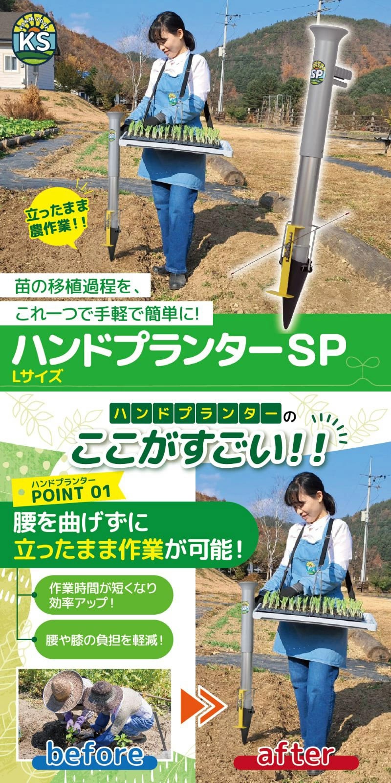 KSFARM ハンドプランターSP 大 Lサイズ 分離型 KS-HPL 【苗投入口直径6.3cm 立ったまま 苗 育苗 移植機 移植器 植付 植え付け 土付苗 軽量 手軽 畑 圃場 土壌 簡単 コンパクト 家庭菜園 ガーデニング 花 野菜 球根 トマト ジャガイモ とうもろこし おしゃれ おすすめ】