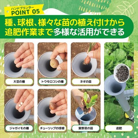 種、球根、様々な苗の植え付けから追肥作業まで、多様な活用ができます。
