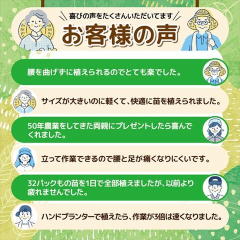 作業時間が短くなり効率アップ!腰や膝の負担を軽減!
