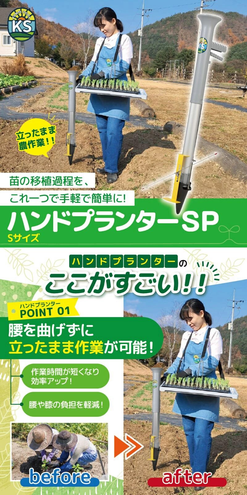 KSFARM ハンドプランターSP 小 Sサイズ 分離型 KS-HPS 【苗投入口直径5cm 立ったまま 苗 育苗 移植機 移植器 植付 植え付け 土付苗 軽量 手軽 畑 圃場 土壌 簡単 コンパクト 家庭菜園 ガーデニング 花 野菜 玉ねぎ とうもろこし ねぎ おしゃれ おすすめ】のレビュー