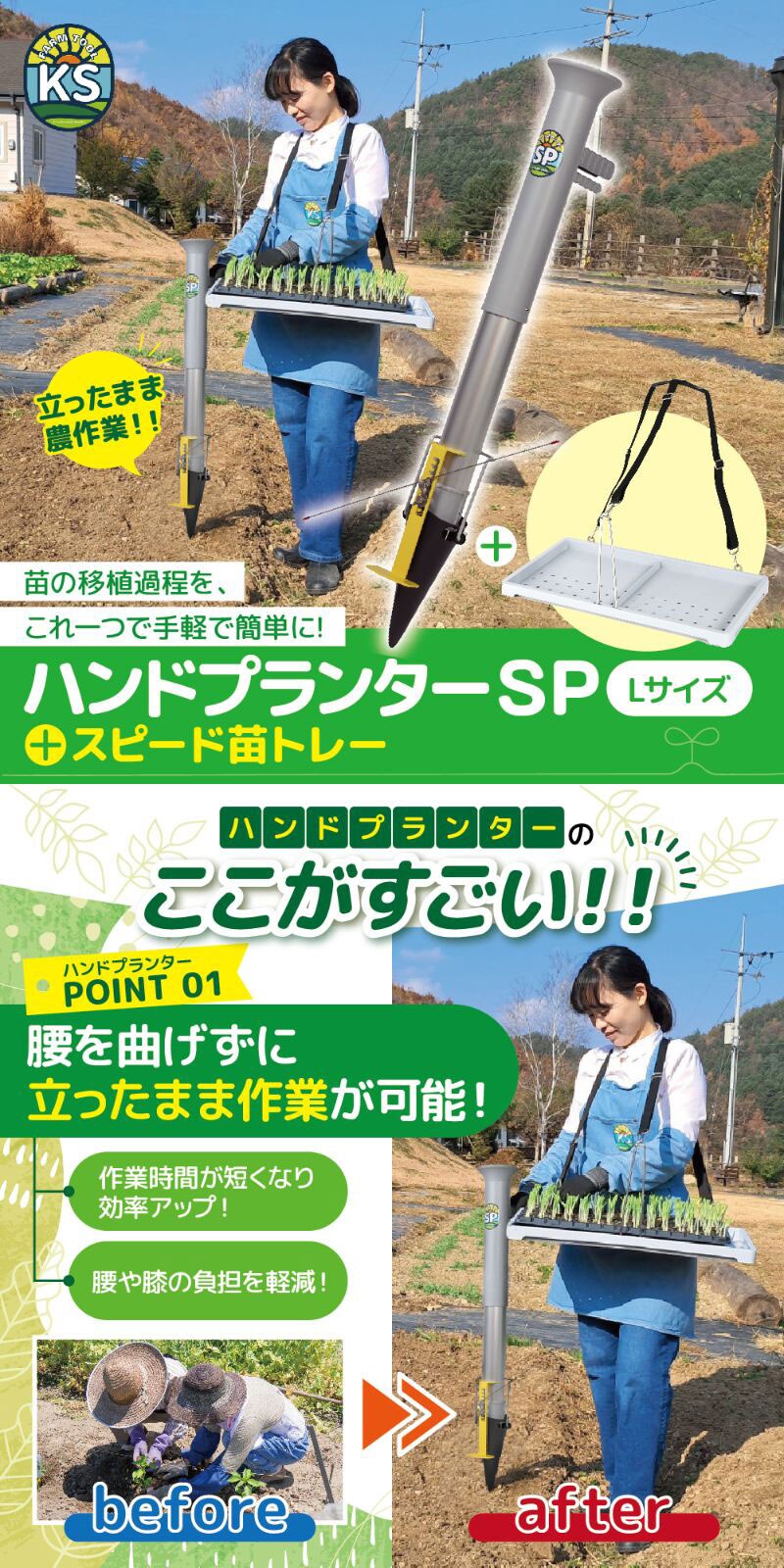 KSFARM ハンドプランターSP 大 Lサイズ + スピード苗トレーセット KS-LSET【苗投入口直径6.3cm 立ったまま 苗 育苗 移植機 移植器 植付 植え付け 土付苗 軽量 手軽 畑 圃場 土壌 簡単 コンパクト 家庭菜園 ガーデニング 花 野菜 球根 トマト ジャガイモ とうもろこし】