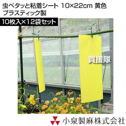小泉製麻 虫ペタッと粘着シート 10×22cm 10枚入×12袋セット 黄色 プラスティック製 【ハウス 農業 園芸 向け 捕虫用 イエロー プラスチック製 作物 野菜 花 植物 虫除け 虫よけ グッズ 虫取り 病害虫】【おしゃれ おすすめ】