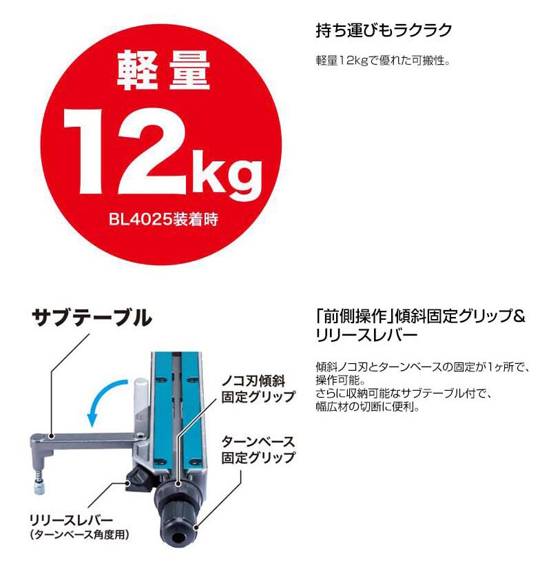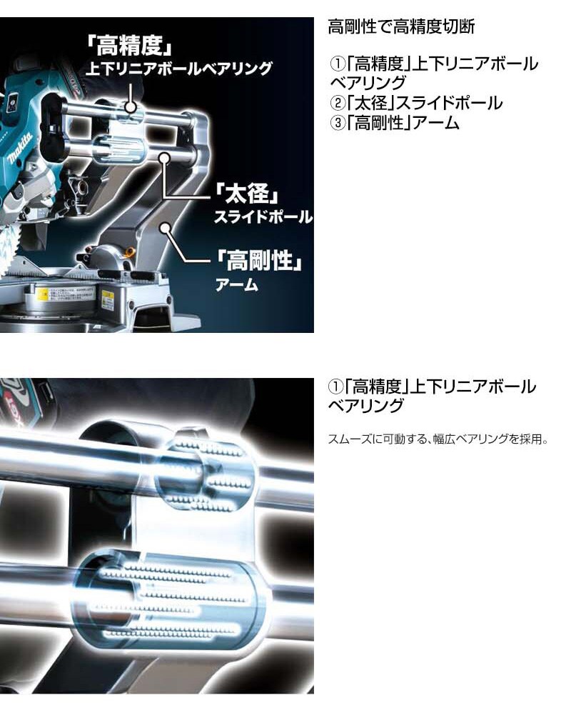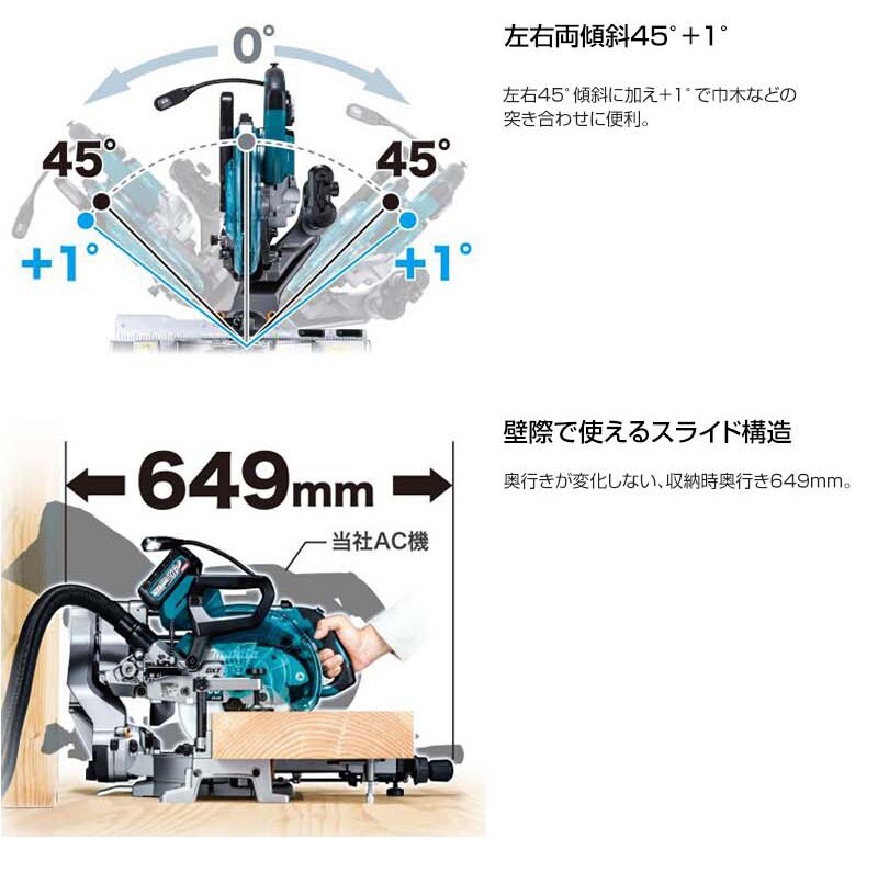 【ノコ刃両傾斜 アルミベース 右側スライドポール 高速切断 鮫肌チップソー 定回転制御 高精度 太径スライドポール 高剛性 スライド構造 サブテーブル付 無線連動集じん対応 レーザー付 高輝度LED 充電式 コードレス 工具 電動工具 DIY ツール 工具 用品 makita 純正品】