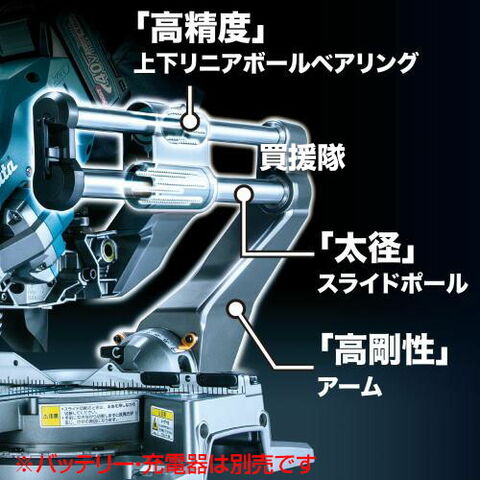【ノコ刃両傾斜 アルミベース 1尺材 切断 右側スライドポール 高速切断 鮫肌チップソー 定回転制御 高精度 太径スライドポール 高剛性 スライド構造 サブテーブル付 軽量 無線連動集じん対応 レーザー付 高輝度LED 充電式 コードレス 工具 電動工具 DIY ツール 工具 用品 makita 純正品】