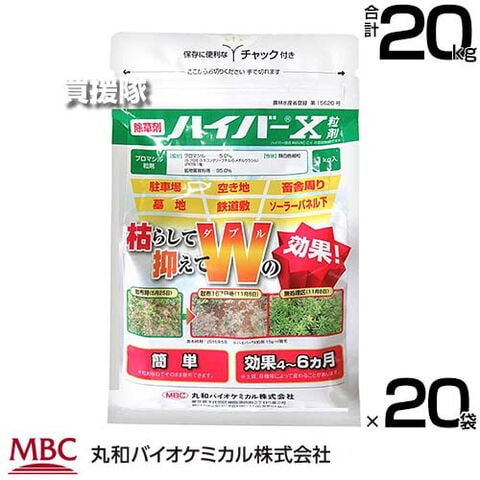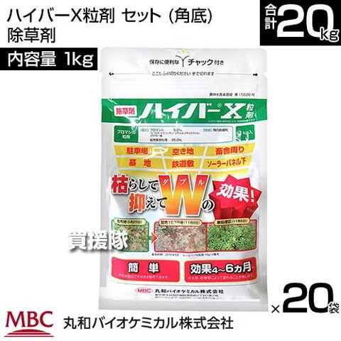 《法人限定》丸和バイオ ハイバーX粒剤 1kg×20袋セット (角底) 除草剤 【緑地管理 除草剤 粒剤 一年生 多年生 幅広い 雑草 長い効き目 鉄道敷 運動場 道路 駐車場 宅地 墓地 畜舎敷地 工場敷地 希釈 原液】【おしゃれ おすすめ】