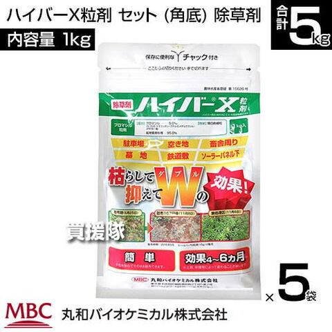 丸和バイオ ハイバーX粒剤 1kg×5袋セット (角底) 除草剤 【緑地管理 除草剤 粒剤 一年生 多年生 幅広い 雑草 長い効き目 鉄道敷 運動場 道路 駐車場 宅地 墓地 畜舎敷地 工場敷地 希釈 原液 水でうすめてまくだけ】【おしゃれ おすすめ】