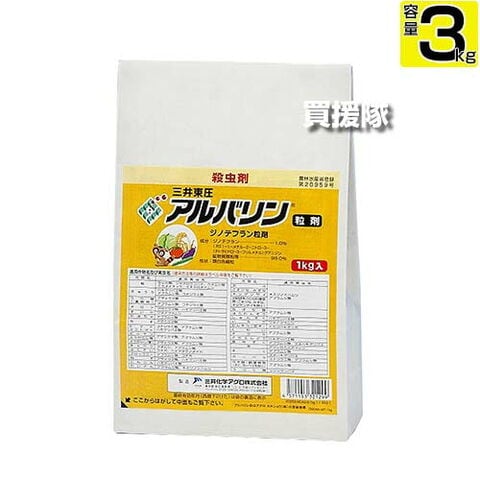 三井化学クロップ&ライフソリューションズ 殺虫剤 アルバリン粒剤 3kg 【水稲 米作り 稲作 水田作物 コナジラミ ハモグリバエ カメムシ 抑制効果 対策 害虫 退治 虫 防除 除け 避け 本田湛水散布 野菜 育苗期 処理】【おしゃれ おすすめ】