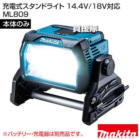 マキタ 充電式スタンドライト 14.4V/18V対応 [本体のみ/バッテリ・充電器別売] ML809 【広範囲 LED ハイブリッド 角度調整 無段階 着脱式電源コード ハンドル付 電動式 単相100V 充電式 コードレス 工具 電動工具 DIY 】【おしゃれ おすすめ】