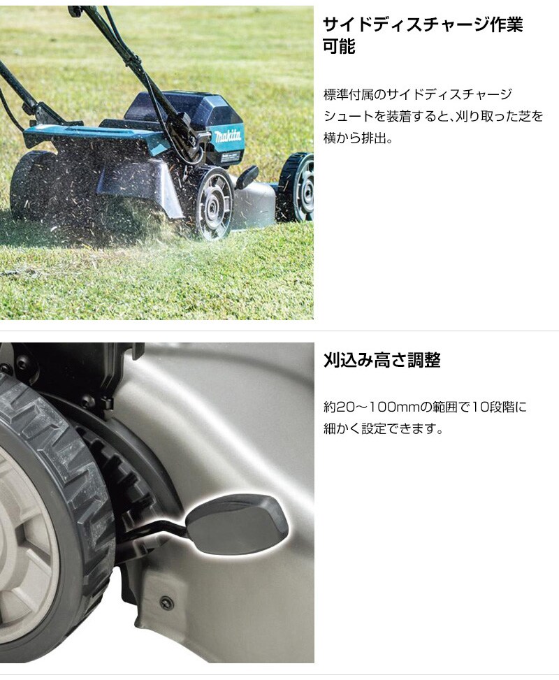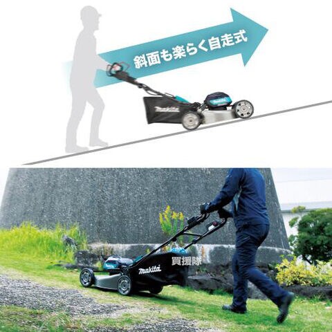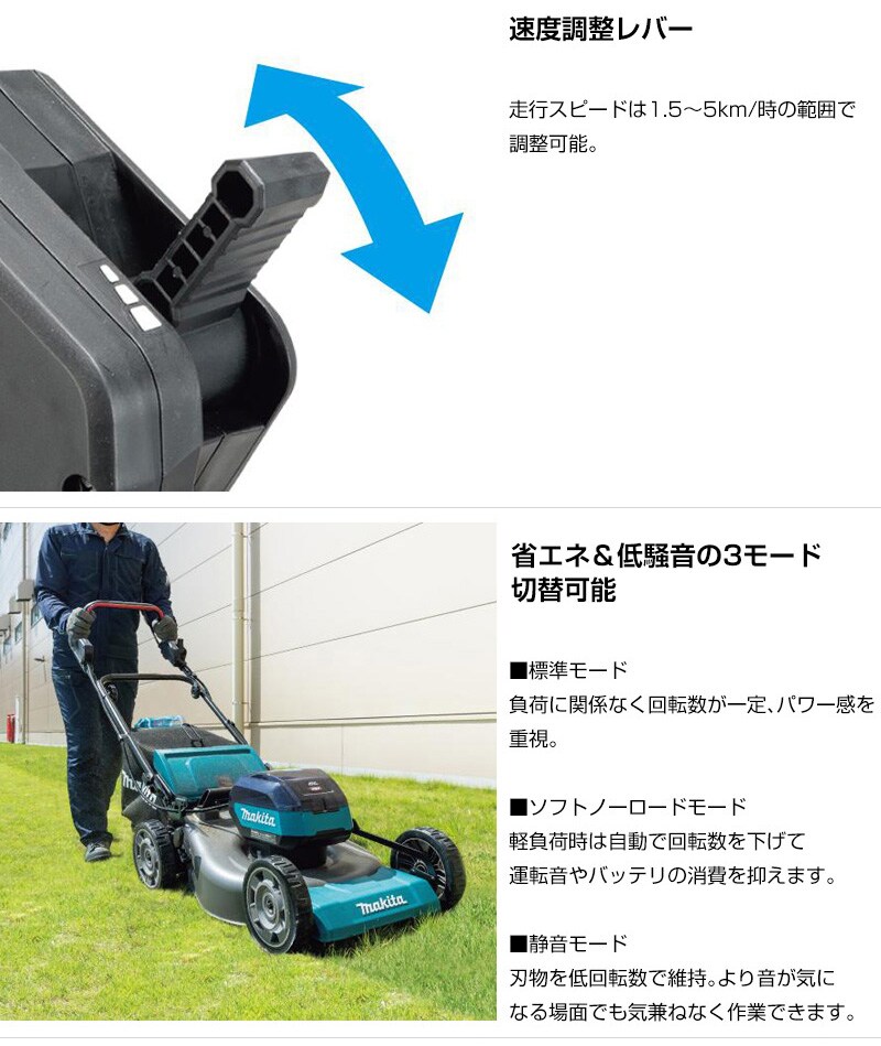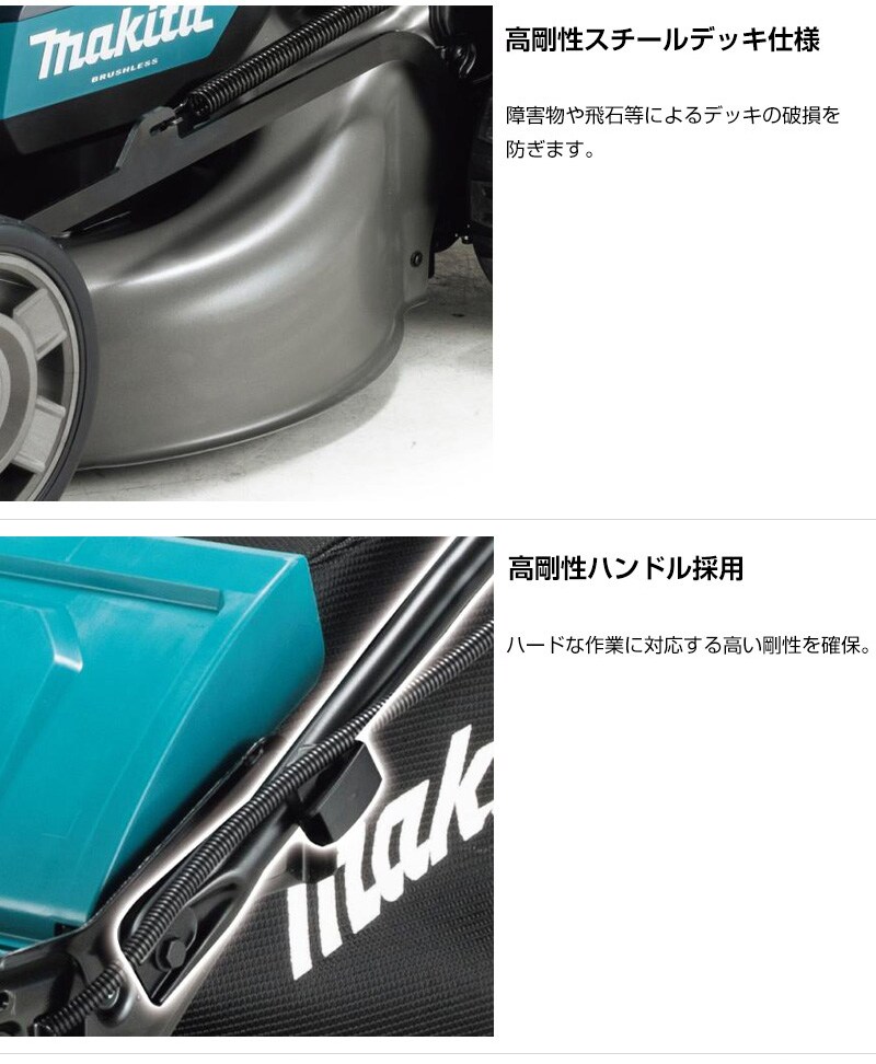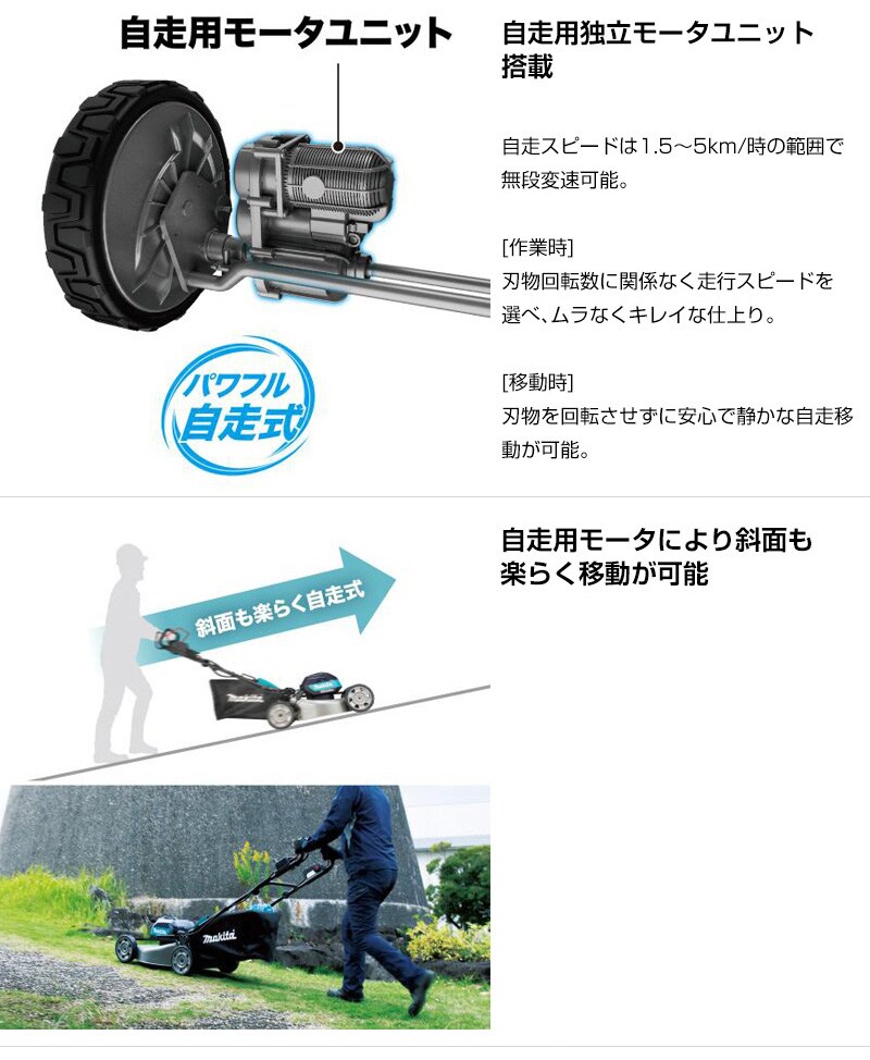 【パワフル 刈込み 自走式 高耐久 低騒音 ハイパワー アウターロータ仕様 高トルク 刃物前方傾斜 2度切り防止 無段変速可 斜面 速度調整 本体防水保護 IPX4 高剛性 スチールデッキ マルチング可 サイドディスチャージ作業可 10段階 縦置き収納可 折り畳み式 充電式 コードレス 工具 電動工具 DIY ツール 工具 用品 makita 純正品】