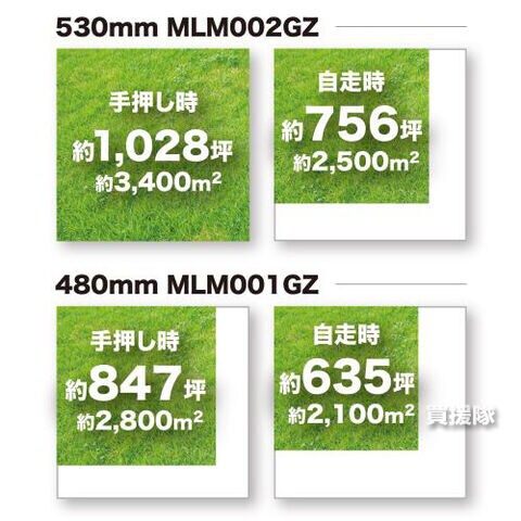 連続作業時間 自走/手押し※2 [(約1時間6分/1時間29分)別売りBL4080F×2本]、[約33/44分(別売りBL4080F×1本)]