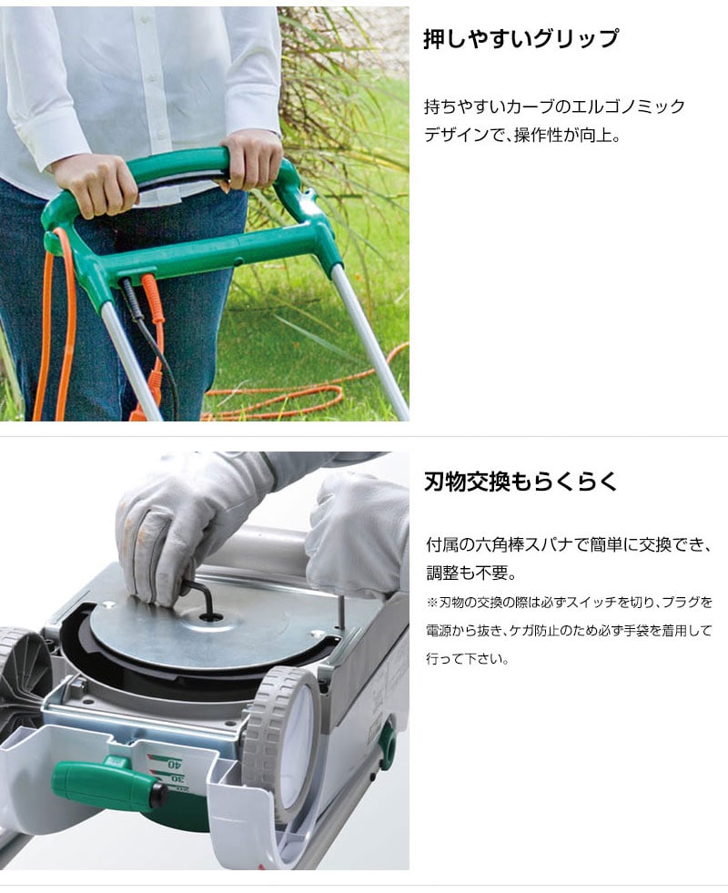 【ロータリー刃式】刃物交換が簡単&手軽。水平に回転する8枚刃で芝生を刈込み。刈払機用8枚刃で交換が簡単かつ安価。