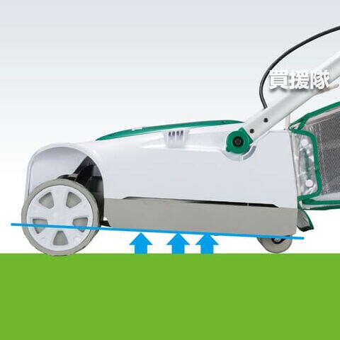 【均一な刈込み】後部のローラ側も上下し、どの高さでもより均一な刈り込みが可能。刈込み高さの調整は、シンプル操作の大型レバー式。
