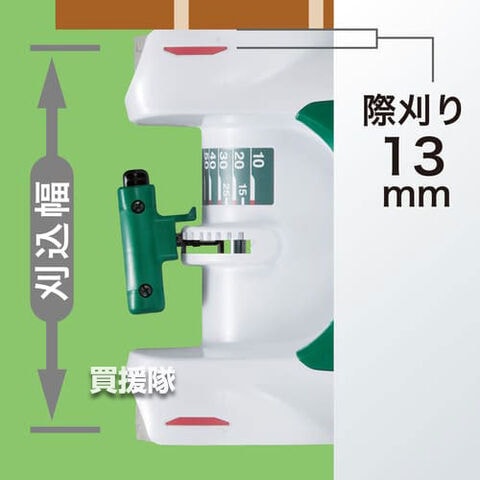 【刈込み幅の目じるし付】刈込み幅が一目でわかり刈残しを減らせます。しかも13mmの際まで刈込み可能。