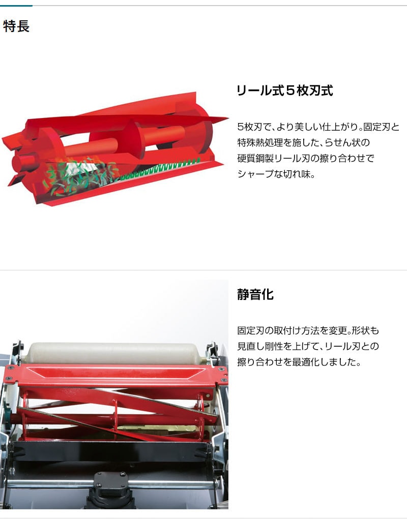 【静音化】固定刃の取付け方法を変更。形状も見直し剛性を上げて、リール刃との擦り合わせを最適化しました。