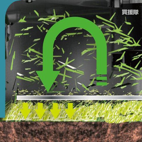 【マルチング可能】刈った芝を細かく砕き、肥料として芝生に撒きます。