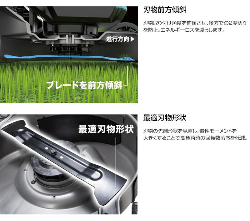 【刃物前方傾斜】刃物取り付け角度を前傾させ、後方での2度切りを防止。エネルギーロスを減らします。