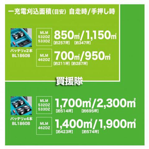 連続作業時間※1  (自走時/約40分、手押時/約50分)別売りBL1860Bx4本
