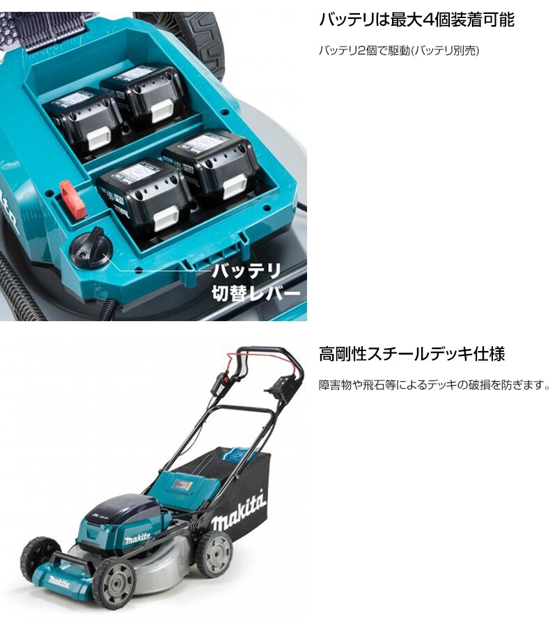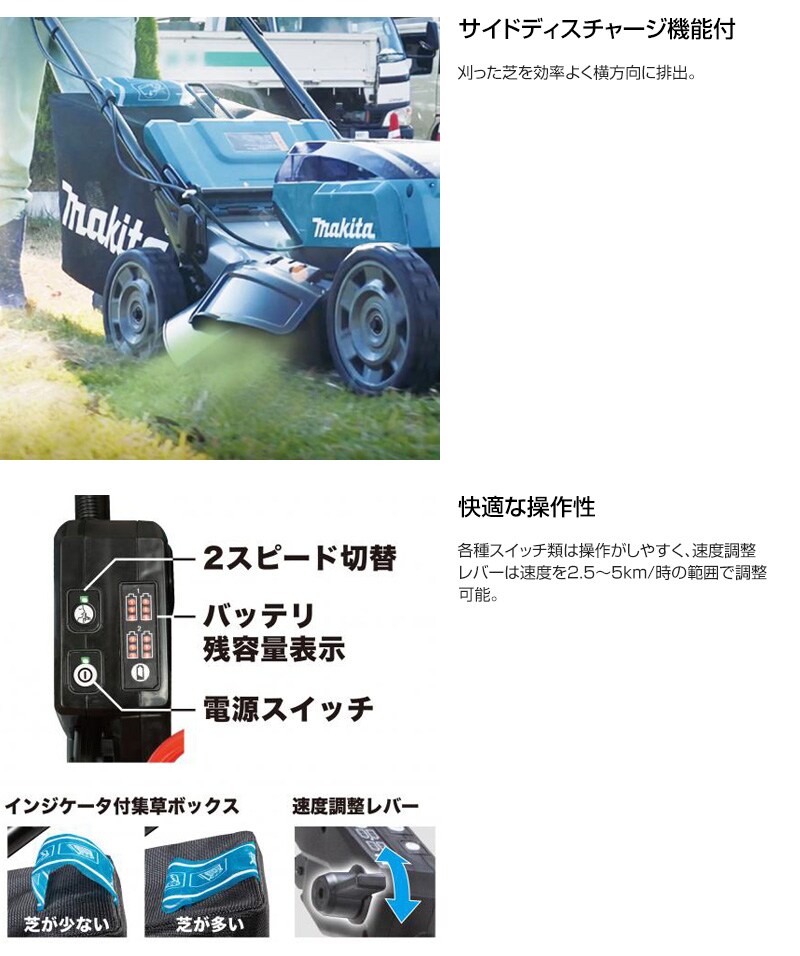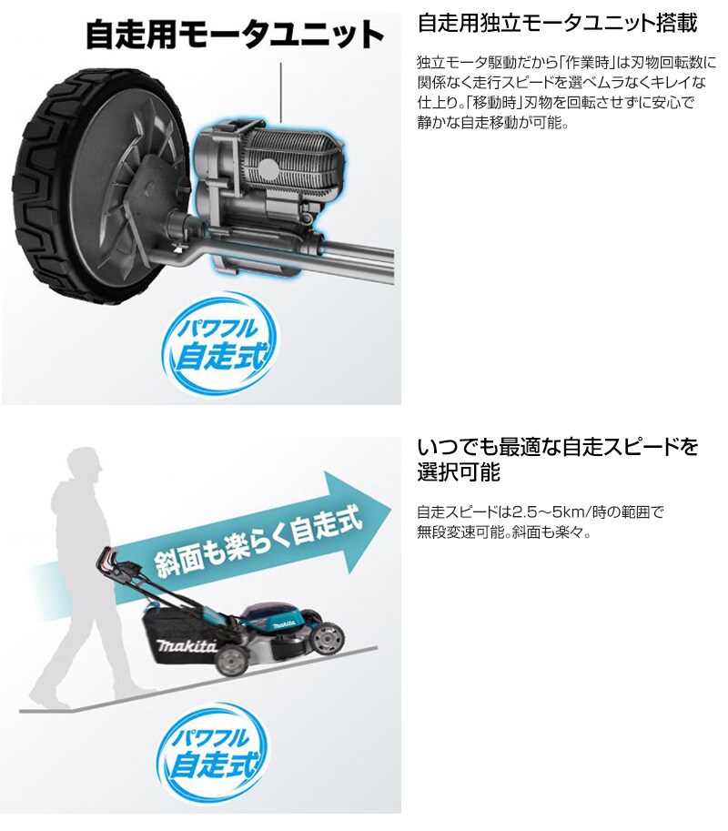 【自走式 メタルデッキ 本格仕様 高耐久 静音 ハイパワー 高出力 ブラシレスモータ 刃物前方傾斜 2度切り防止 自走移動 無段変速可 高剛性 スチールデッキ サイドディスチャージ機能付 速度調整 マルチング可 充電式 コードレス 工具 電動工具 DIY ツール 工具 用品 makita 純正品】