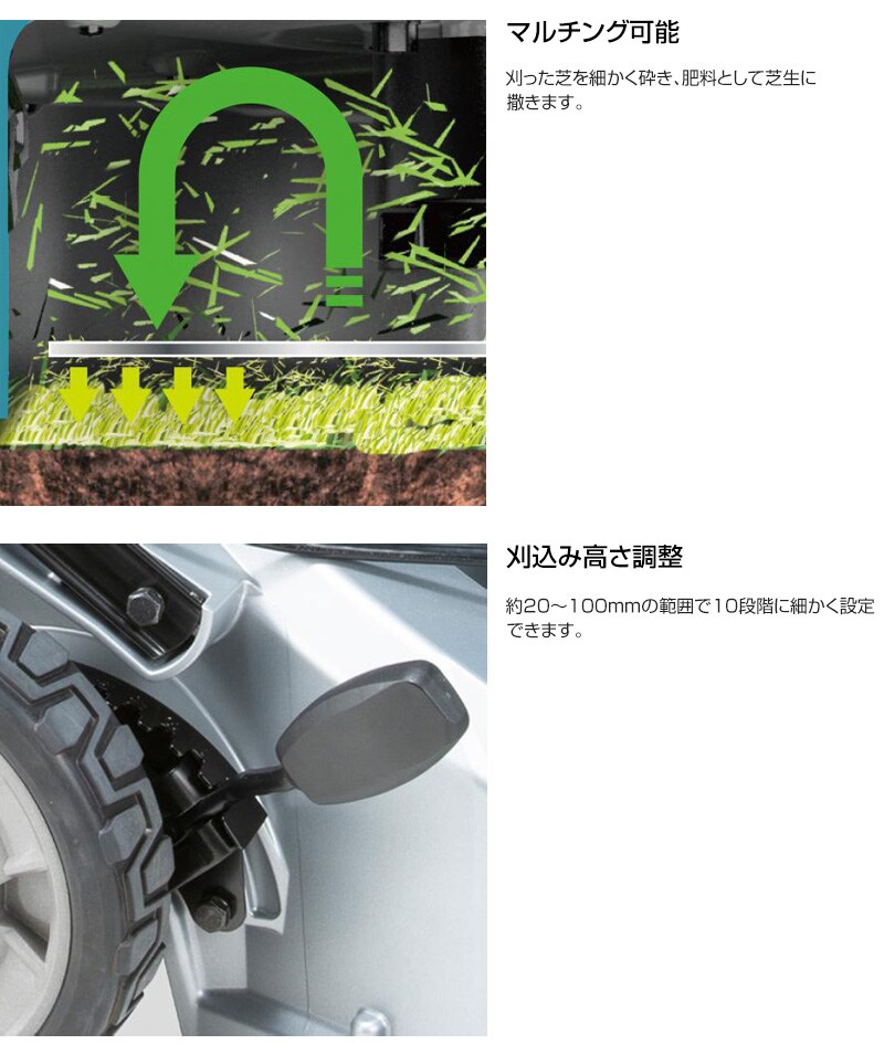 【マルチング可能】刈った芝を細かく砕き、肥料として芝生に撒きます。