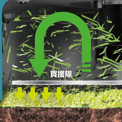 【マルチング可能】刈った芝を細かく砕き、肥料として芝生に撒きます。