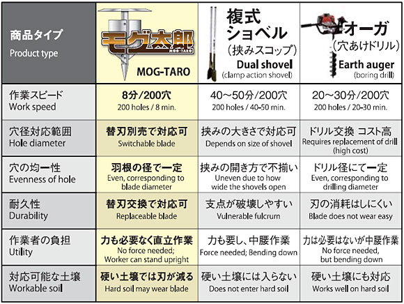 モグ太郎は、刈払機の動力源そのまま使用するため、高いコストパフォーマンスを実現。