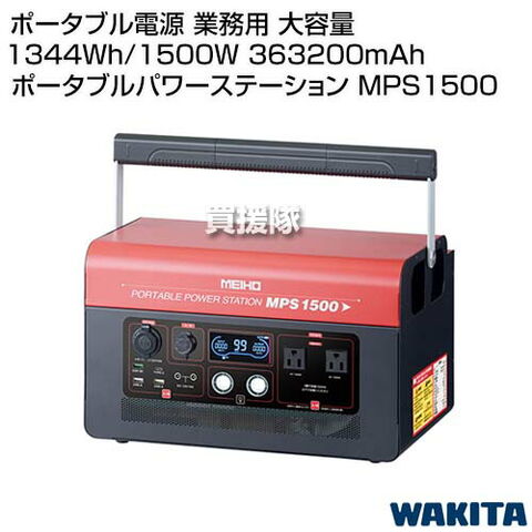 ワキタ ポータブル電源 業務用 大容量 1344Wh/1500W 363200mAh ポータブルパワーステーション MPS1500 【MEIHO 大容量 蓄電池 蓄電源 家庭用 業務用 車中泊 電源 発電機 リン酸鉄 長寿命 防災グッズ 非常用 電源 災害 】【おしゃれ おすすめ】