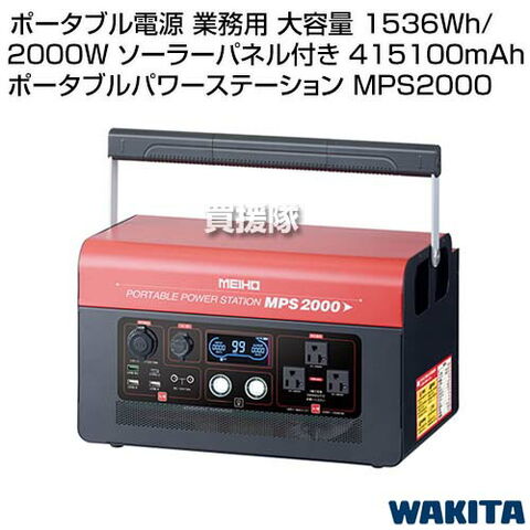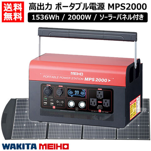 ワキタ ポータブル電源 業務用 大容量 1536Wh/2000W ソーラーパネル付き 415100mAh ポータブルパワーステーション MPS2000 【MEIHO 大容量 ソーラーパネル セット 蓄電池 蓄電源 家庭用 業務用 車中泊 電源 発電機】【おしゃれ おすすめ】
