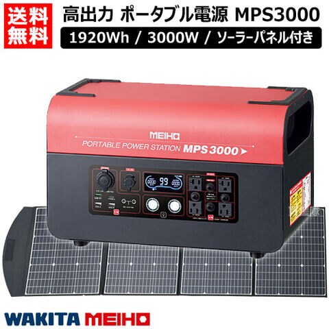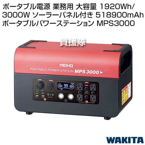 ワキタ ポータブル電源 業務用 大容量 1920Wh/3000W ソーラーパネル付き 518900mAh ポータブルパワーステーション MPS3000 【MEIHO 大容量 ソーラーパネル セット 蓄電池 蓄電源 家庭用 業務用 車中泊 電源 発電機】【おしゃれ おすすめ】