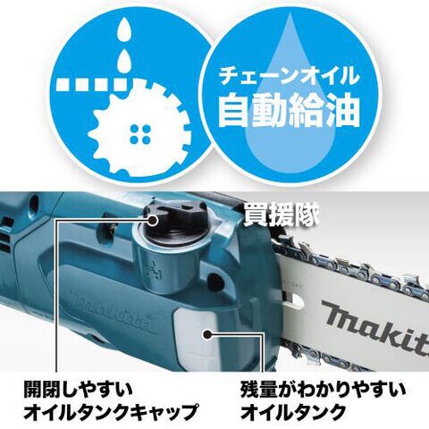 【コンパクト 3分割式 太枝 剪定 高所 枝払い 高出力 高耐久 メンテナンスフリー 角度調整 下向き作業 スリム 延長可 自動給油 テンション自動調整 枝用フック 薄刃 竹 切断 充電式 コードレス 工具 電動工具 DIY ツール 工具 用品 makita 純正品】