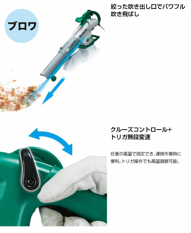 マキタ ブロワ集じん機 MUB1200 【手軽 吹飛ばし 集じん 肩掛けバンド付 ノズル伸縮 6段階 ワンタッチ 収納 コンパクト 粉砕機能付 無段変速 2輪キャスタ付 大開口 ダストバッグ 肩掛けバンド付 充電式 コードレス】【おしゃれ おすすめ】
