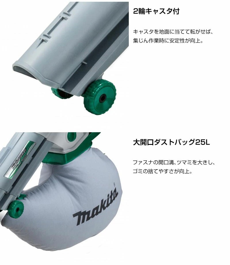 【手軽 吹飛ばし 集じん 肩掛けバンド付 ノズル伸縮 6段階 ワンタッチ 収納 コンパクト 粉砕機能付 無段変速 2輪キャスタ付 大開口 ダストバッグ 肩掛けバンド付 充電式 コードレス 工具 電動工具 DIY ツール 工具 用品 makita 純正品】