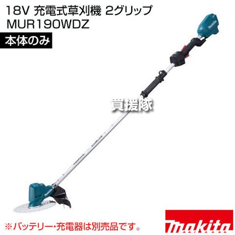 マキタ 18V 充電式草刈機 2グリップ [本体のみ/バッテリ・充電器別売] MUR190WDZ 【工具レス シャフトロック付 高回転 高トルク 自動変速 省エネ 低騒音 高速 中速 低速 簡単始動 ホワイトチップソー付 傾斜地 充電式 】【おしゃれ おすすめ】