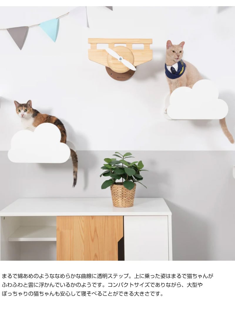 MYZOO キャットステップ 雲型 天然木 ホワイト MOKU 【キャットステップ 猫家具 キャットツリー キャットタワー 全猫種 猫 ねこ ネコ キャット 全年齢対応 木製 アスレチック 遊具 室内飼い 運動不足 ストレス解消 踏】【おしゃれ おすすめ】