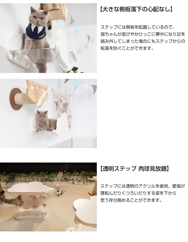 【キャットステップ 猫家具 キャットツリー キャットタワー 全猫種 猫 ねこ ネコ キャット 全年齢対応 木製 アスレチック 遊具 室内飼い 運動不足 ストレス解消 踏み台 壁 設置 装飾 インテリア 壁掛け】