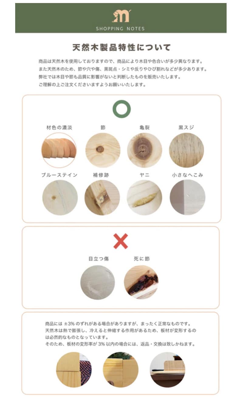※天然木を使用した商品につき木目や色味、節など個体差があります。これら天然木の特性を理由とした返品・交換はお受けできませんので予めご了承ください。