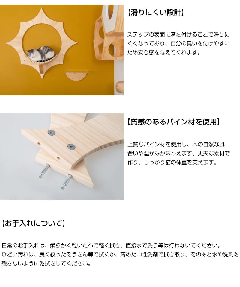 【キャットステップ 猫家具 キャットツリー キャットタワー 全猫種 猫 ねこ ネコ キャット 全年齢対応 木製 アスレチック 遊具 室内飼い 運動不足 ストレス解消 踏み台 壁 設置 装飾 インテリア 壁掛け】
