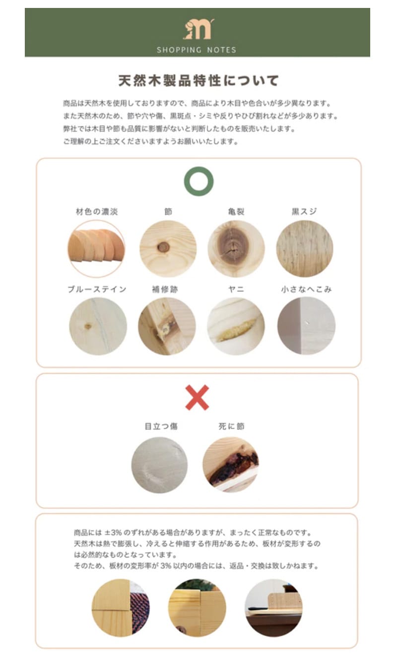 ※天然木を使用した商品につき木目や色味、節など個体差があります。これら天然木の特性を理由とした返品・交換はお受けできませんので予めご了承ください。