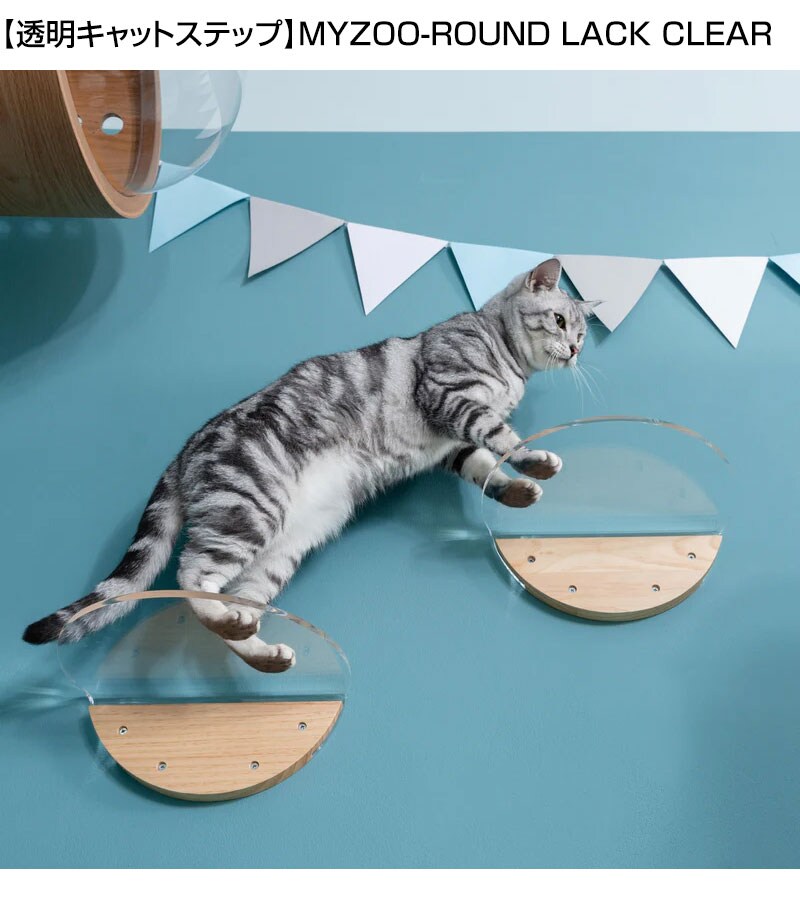 MYZOO キャットステップ 半円型 クリア (1枚入) ROUND LACK CLEAR 【キャットステップ 猫家具 キャットツリー キャットタワー 全猫種 猫 ねこ ネコ キャット 全年齢対応 木製 アスレチック 遊具 室内飼い 運動不足 】【おしゃれ おすすめ】