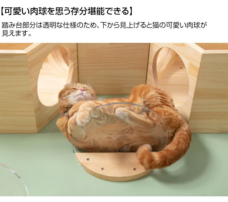 踏み台部分は透明な仕様のため、下から見上げると猫の可愛い肉球が見えます。