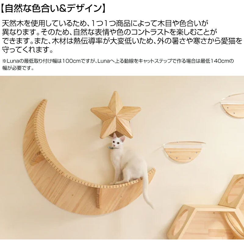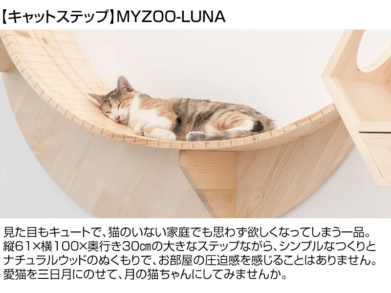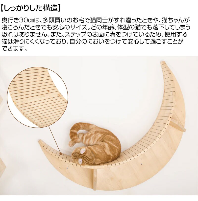MYZOO キャットステップ 三日月型 LUNA 【キャットステップ 猫家具 キャットツリー キャットタワー 全猫種 猫 ねこ ネコ キャット 全年齢対応 木製 アスレチック 遊具 室内飼い 運動不足 ストレス解消 踏み台 壁 設置】【おしゃれ おすすめ】