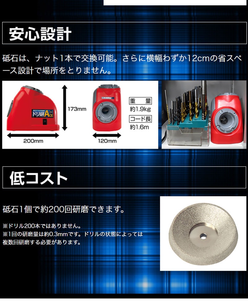 品名 鉄工ドリル研磨機 ドリ研 ACE(エース) A型