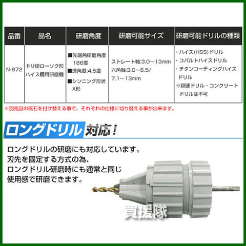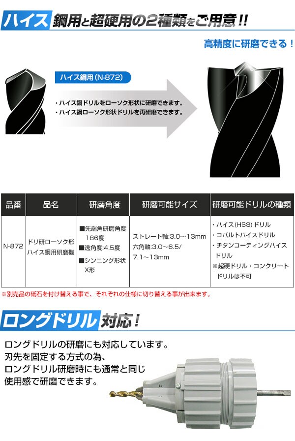 ※研磨可能ドリル種類:超硬ドリル/コンクリートドリルは研磨できません。