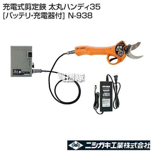ニシガキ 充電式剪定鋏 太丸ハンディ35 [バッテリ・充電器付] N-938 【ハサミ 鋏 はさみ 高枝鋏 植木 植え木 植えき 街路樹 果樹 剪定 黒豆 収穫 コードレス 充電式 枝払い 枝打ち】【おしゃれ おすすめ】