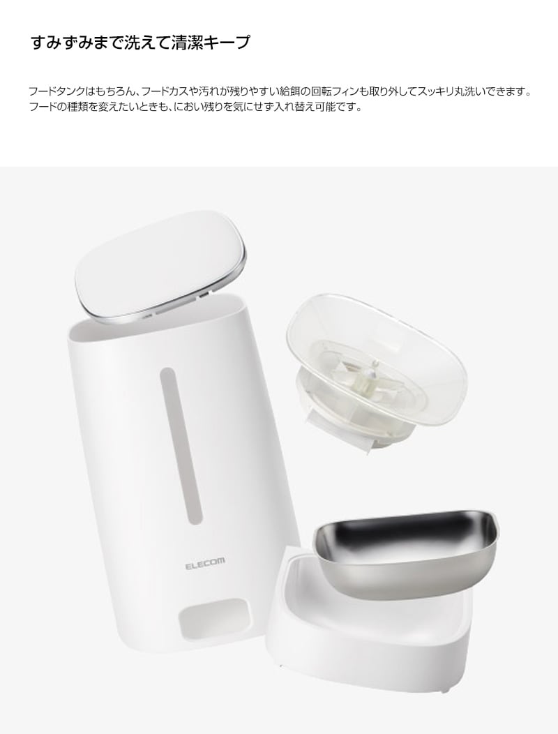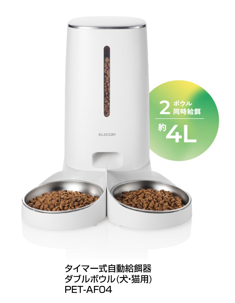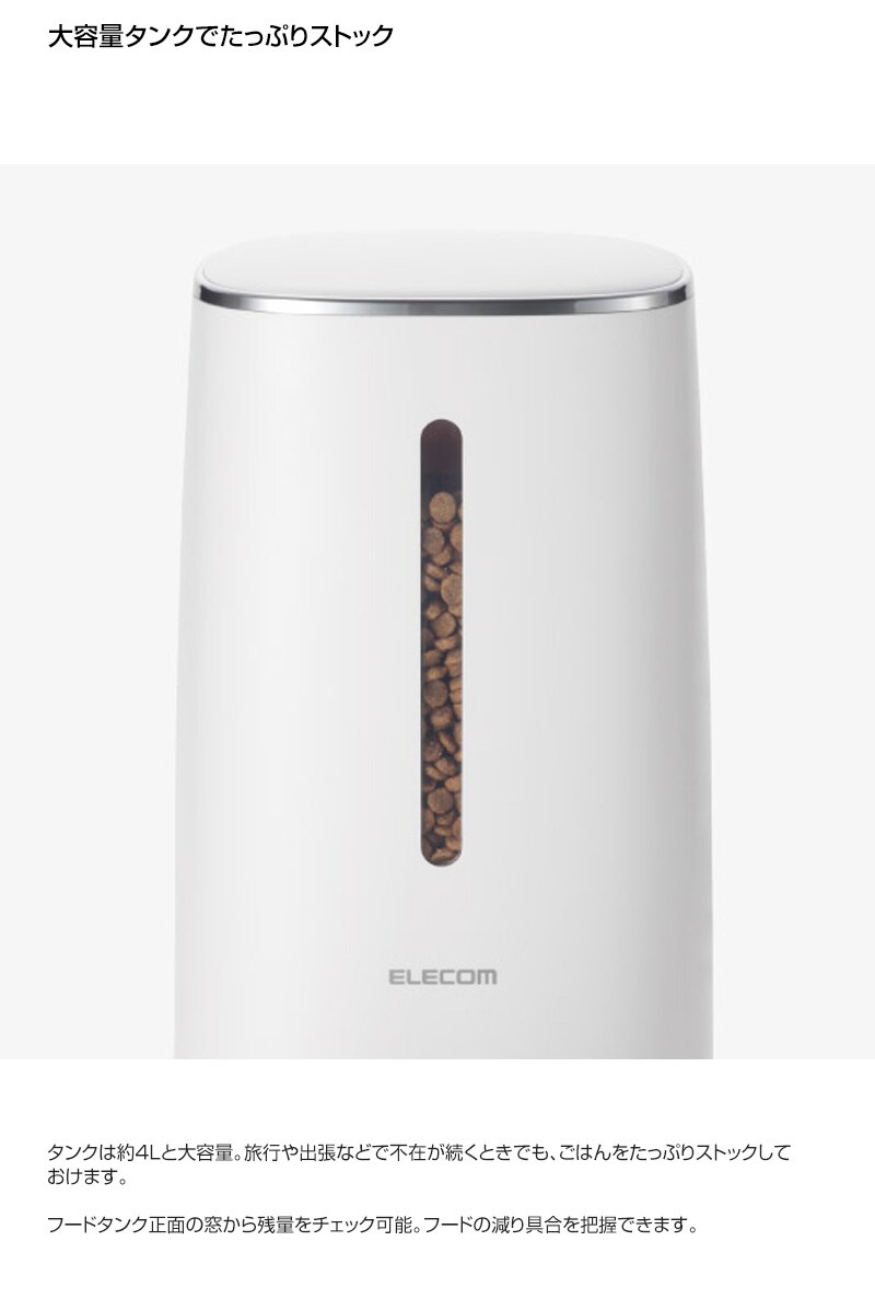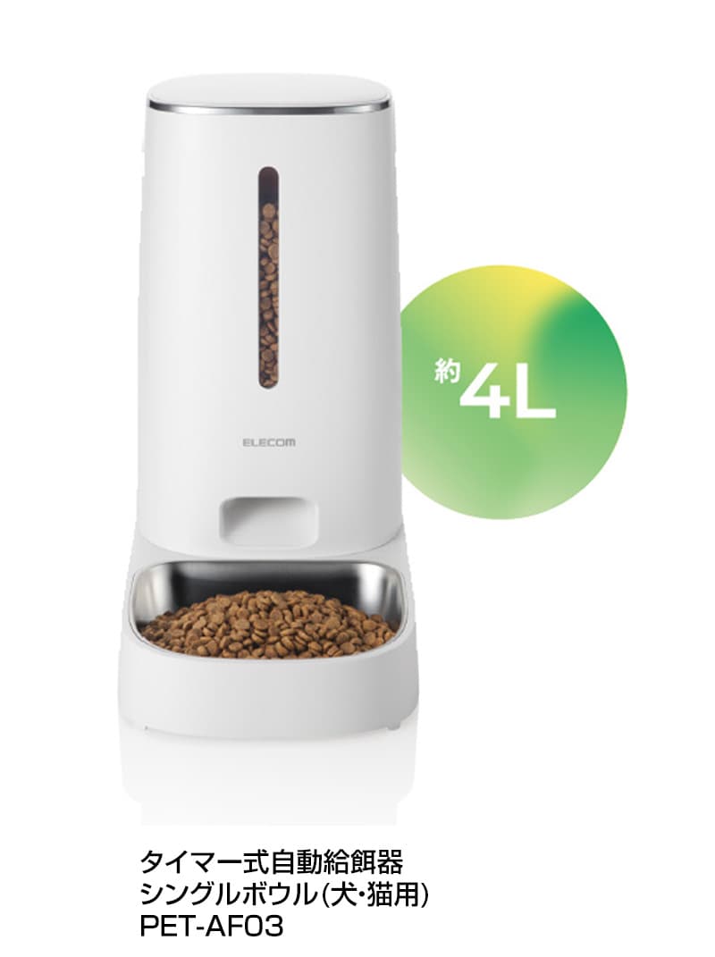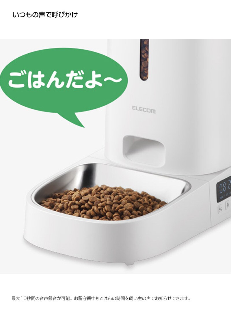 ELECOM ペット用 自動給餌器 タイマー式 1皿タイプ ホワイト PET-AF03WH 【1匹用 ドライフード対応 約4L ネコ 猫 いぬ 犬 ペット 用 録音 ロック タイマー 機能付き 早食い 肥満対策 吐き戻し防止 餌やり 自動 オート 】【おしゃれ おすすめ】