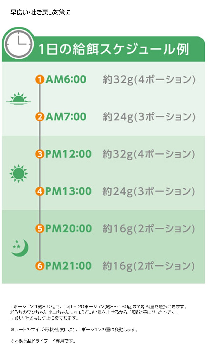 給餌量/フードタイプ 20パターン/ドライフード専用 ※3