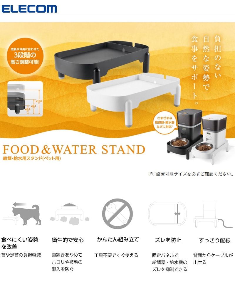 ELECOM 給餌・給水用スタンド ホワイト PET-ST01WH 【自動給餌器 給水器 給餌 給水 ご飯皿 フードボール 高さ 3段階 調整 用 スタンド 台 テーブル ネコ 猫 いぬ 犬 ペット 用 餌 えさ 餌やり エレコム mofult モフルト】【おしゃれ おすすめ】