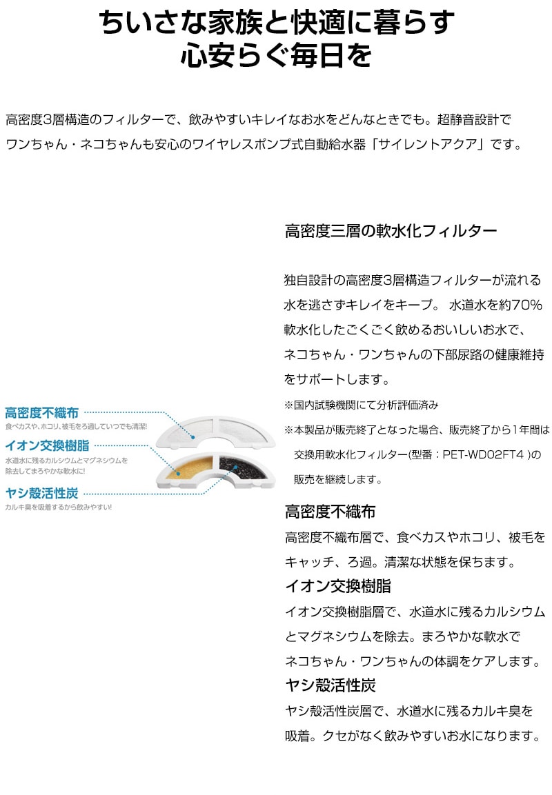 高密度3層構造フィルターで、いつでも清潔なお水をごくごく飲めるからお留守番中も安心。