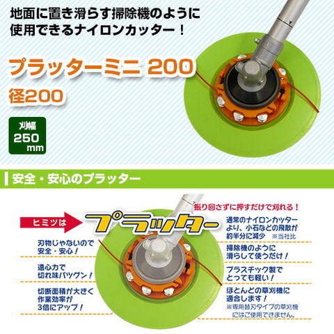 プラッターミニ 200 径200 [刈幅250mm] 【プラッターミニ ナイロンカッター 草刈機 ナイロン 刃 アタッチメント ナイロンコード 除草 芝刈 草刈り 芝刈り 刈払機 草刈刃 ぷらったーみに】 【おしゃれ おすすめ】