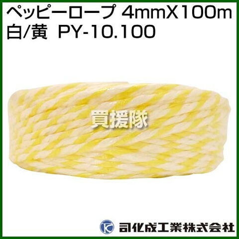 司化成工業 ペッピーロープ 4mm×100m 白/黄 PY-10.100 [カラー:白/黄] 【PET・PP ROPE つかさかせい ハイブリッドロープ 手結束材 梱包 整理 ぺっぴーろーぷ 強度 柔らい紐 伸びにくい紐 高強度紐】【おしゃれ おすすめ】